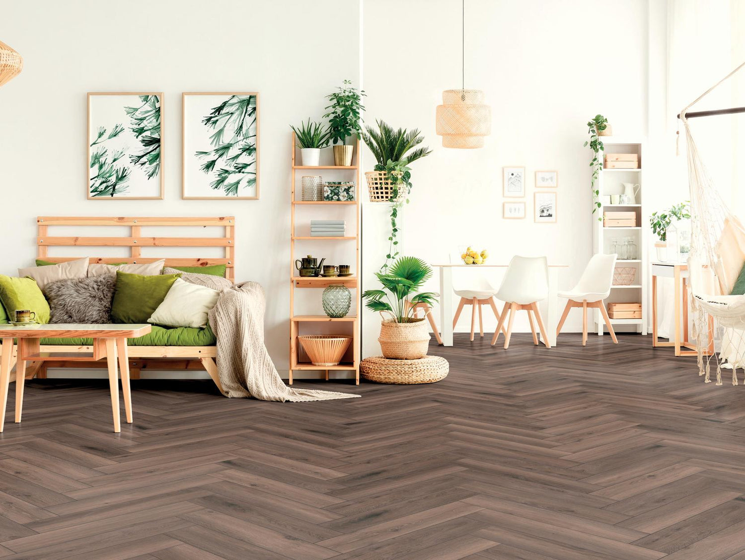 Et elegant og smukt laminatgulv, som med det klassiske sildebensmønster giver et utrolig tidløst og stilrent design. Med fas på alle 4 sider. Slidstyrken passer til privat bolig, fx. soveværelse, køkken, stue og værelser.