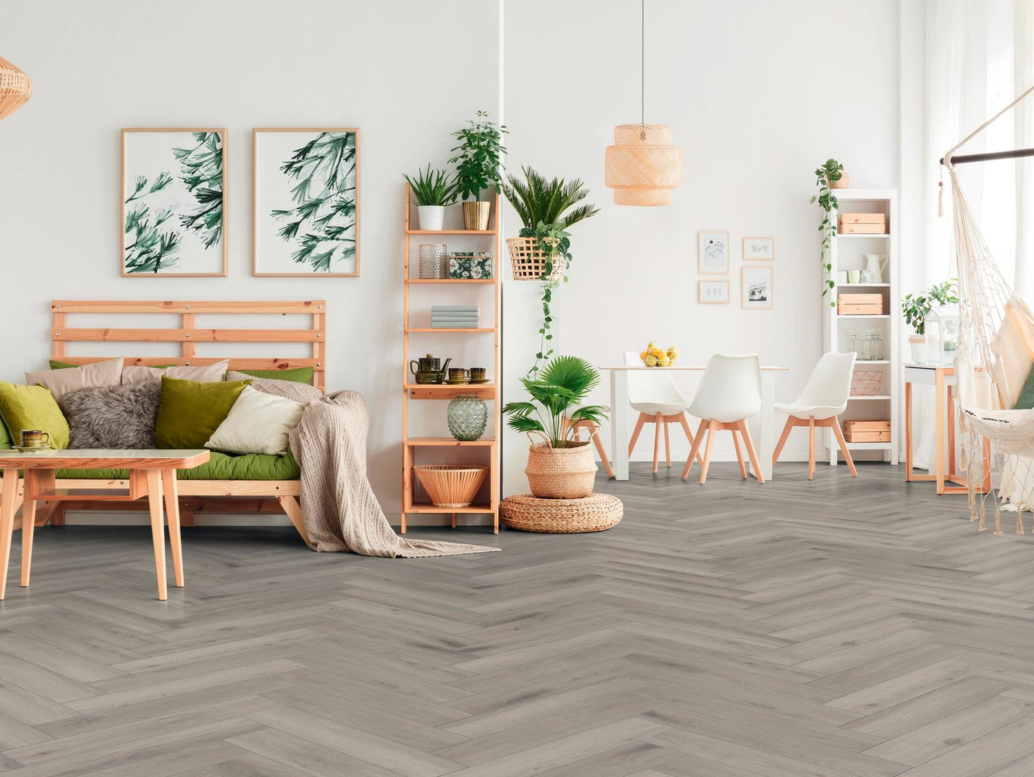 Et elegant og smukt laminatgulv, som med det klassiske sildebensmønster giver et utrolig tidløst og stilrent design. Med fas på alle 4 sider. Slidstyrken passer til privat bolig, fx. soveværelse, køkken, stue og værelser.