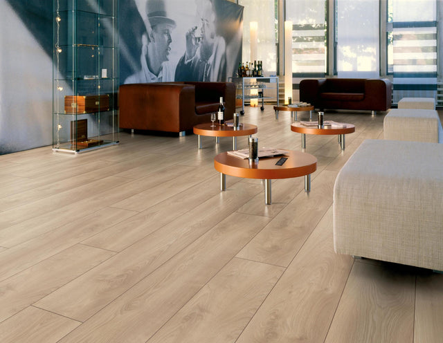 Rustikt planke-laminatgulv, der passer flot ind i tidens rustikke trend. Med fas hele vejen rundt om planken, som giver et naturligt planke-look. Med kliksystem for nem montering.