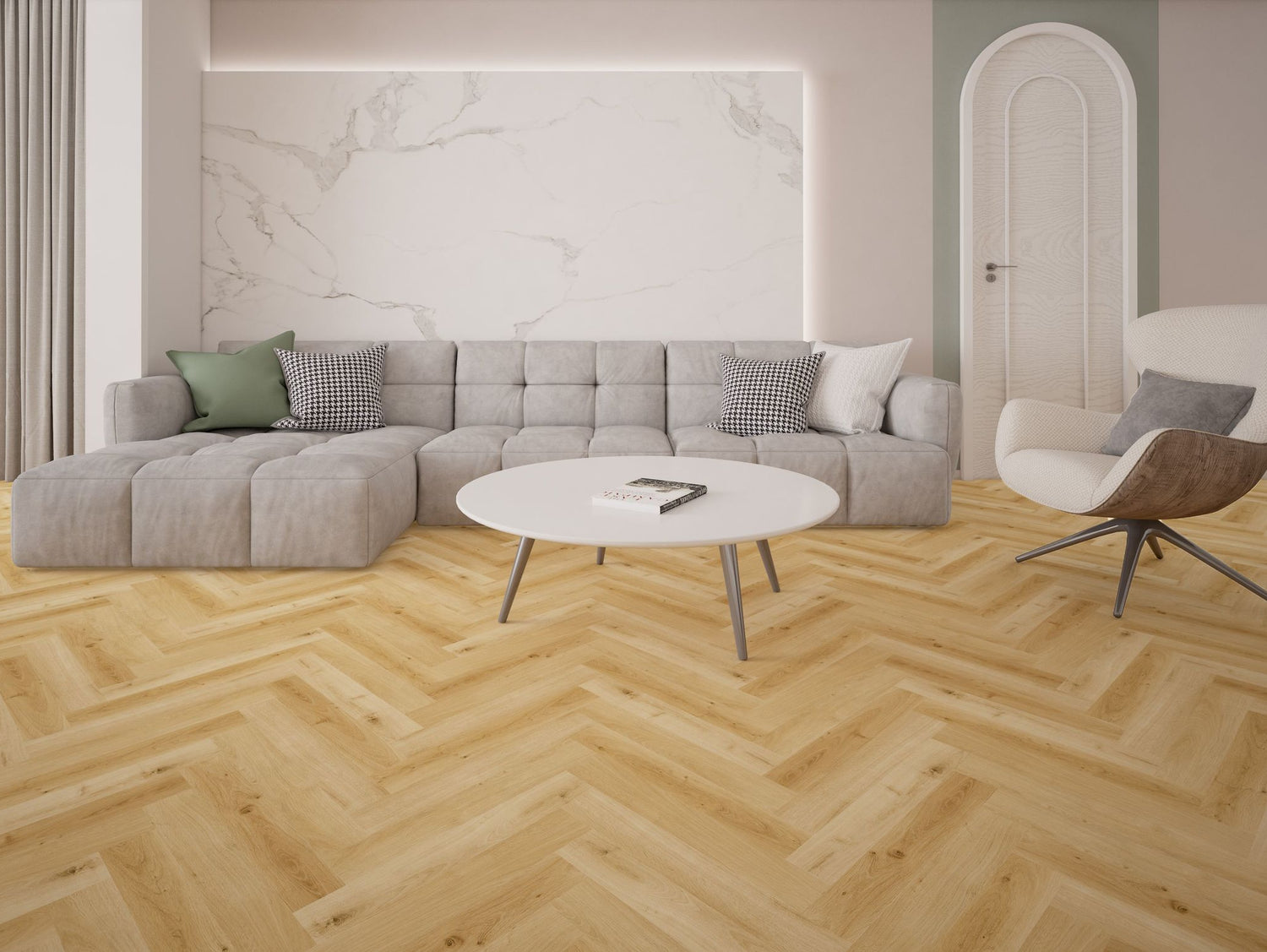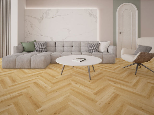 Elite Lvt klik med kork sildeben Lys natur 185 er et elegant og slidstærkt valg til dem, der ønsker et herskabeligt udseende i deres hjem. Dette akustikgulv fra Migadan kombinerer skønhed med funktionalitet og er perfekt til moderne boliger, der kræver både stil og holdbarhed.