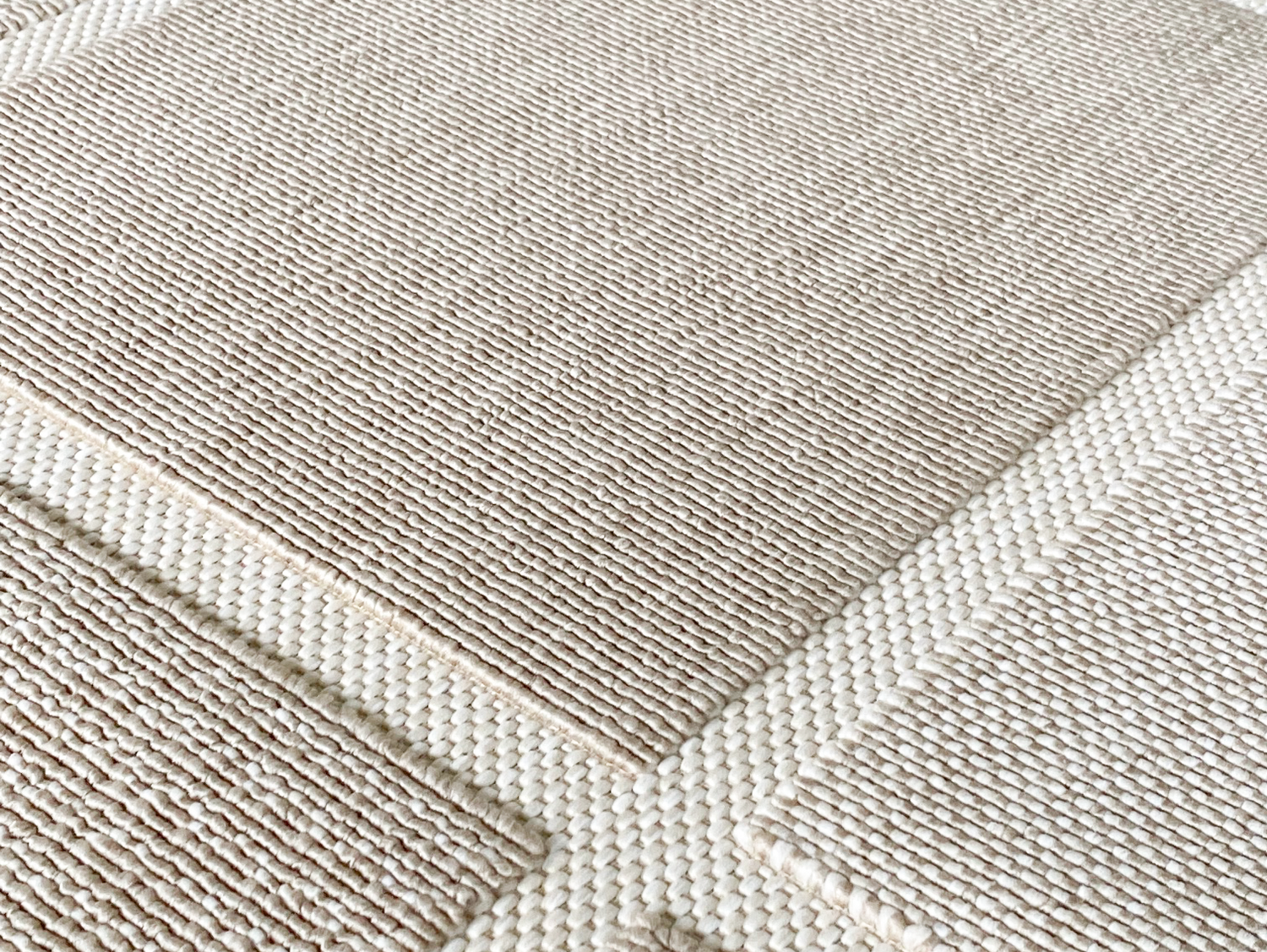 Med sin fladvævede konstruktion sikrer tæppet både slidstyrke og en behagelig overflade at færdes på. Sandfarven tilføjer et elegant og tidløst touch, der nemt integrerer sig i både minimalistiske og klassiske indretningsstile.